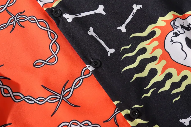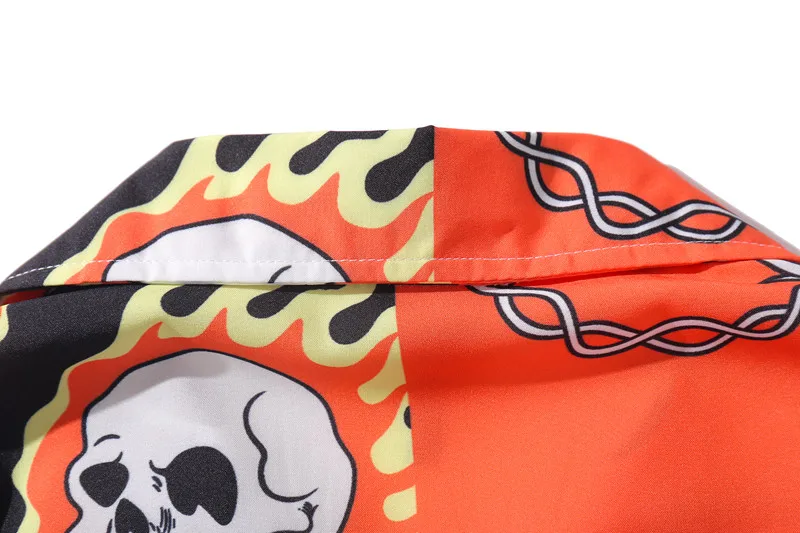Flaming Hot Skull Holiday Beach Hawaiian Vintage Street Unisex Shirt Short Sleeve Summer 2024
