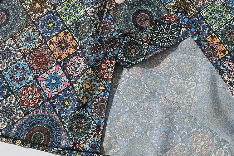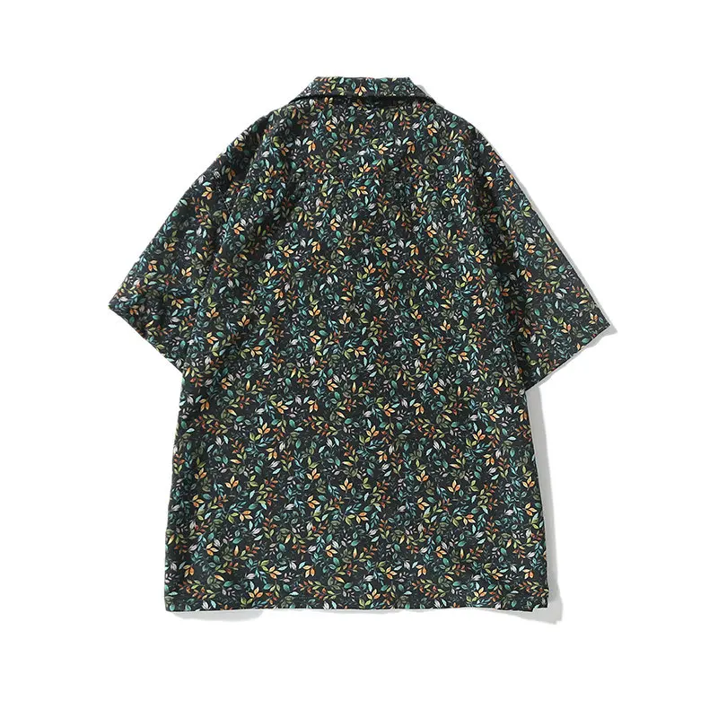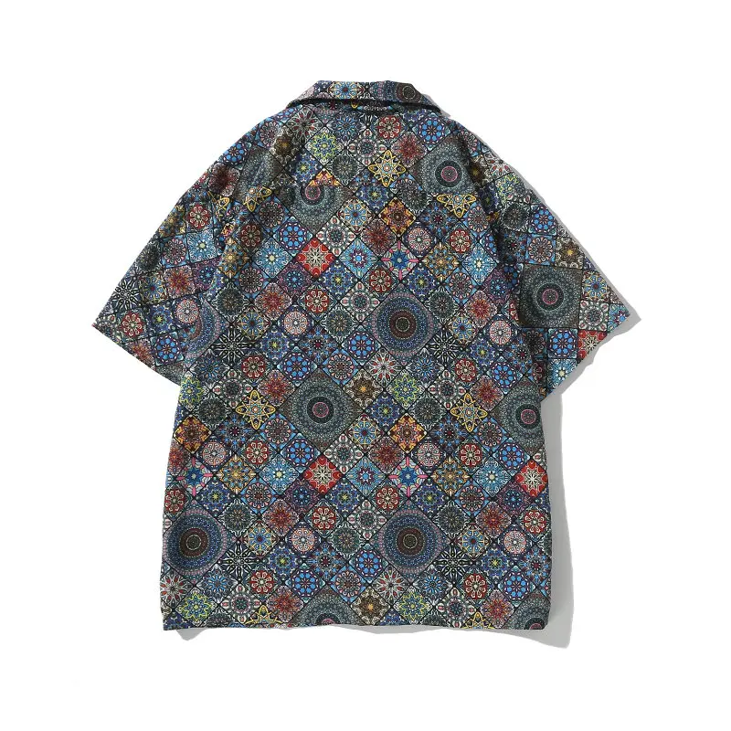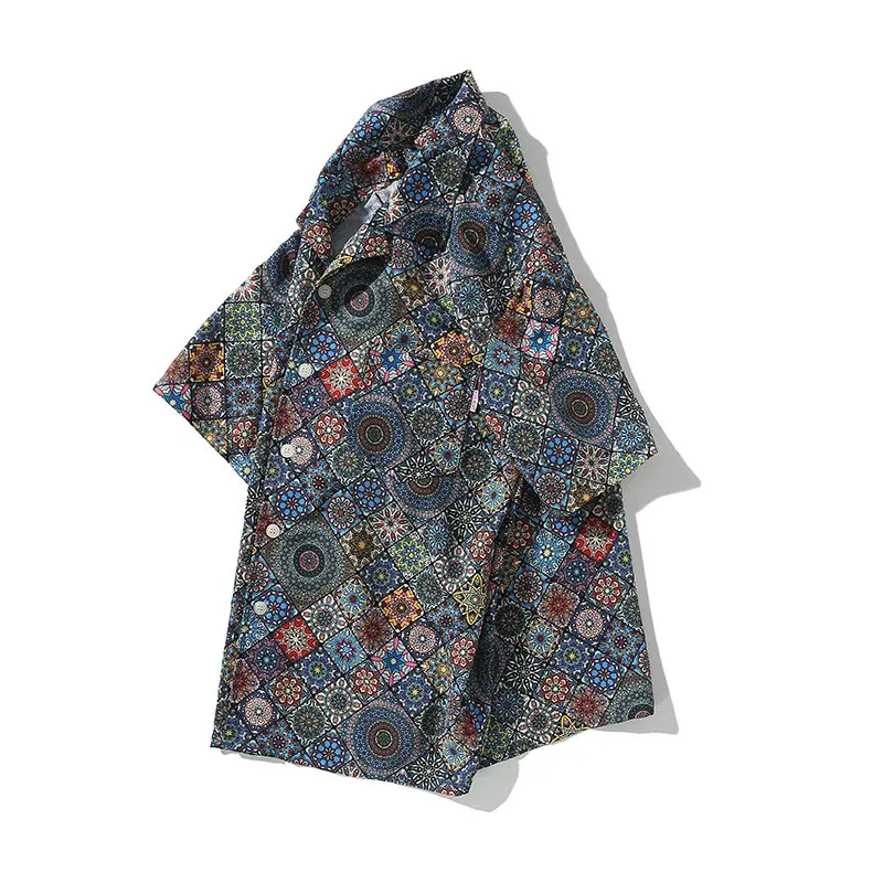 Trippy DMT Pattern Blue & Green Summer Vintage Flower Print Fashion Loose Casual Short Sleeve Beach Shirts Male Korean Net Celebrity Dress Shirts Blouses